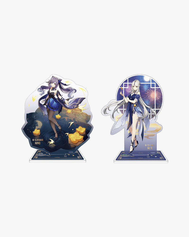 Everyone knows that Keqing and Ningguang make for a dynamic duo! Have these characters by your side at all times with this set containing acrylic standees and can badges for each character.